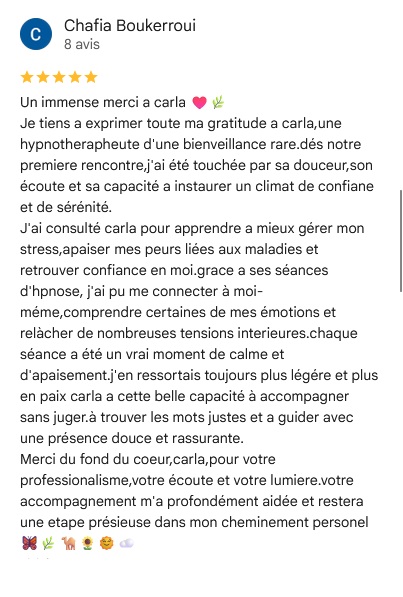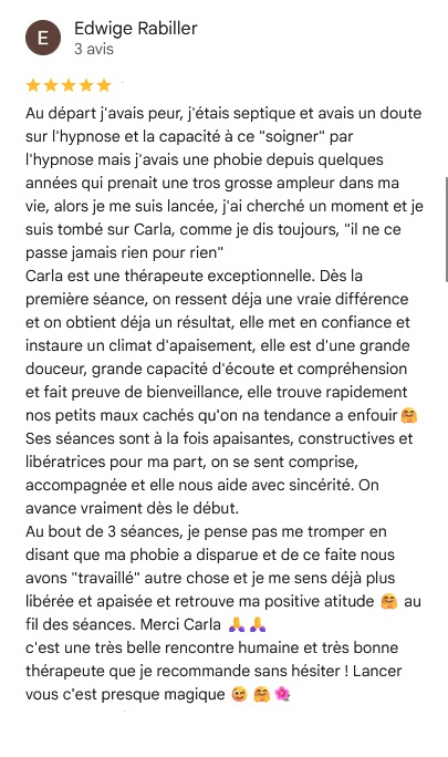 Votre mutuelle peut prendre en charge une partie des frais des séances d'hypnothérapie. Sur demande, je vous fournirai une facture à lui soumettre pour un éventuel remboursement.