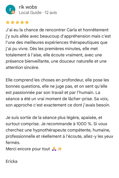 Avec cette approche collaborative, mêlant hypnose thérapeutique et psychothérapie, vous conservez le contrôle et êtes à l'abri de toute manipulation. Vous êtes maître de votre transformation positive, tandis que je vous guide, avec détermination, vers le changement souhaité.